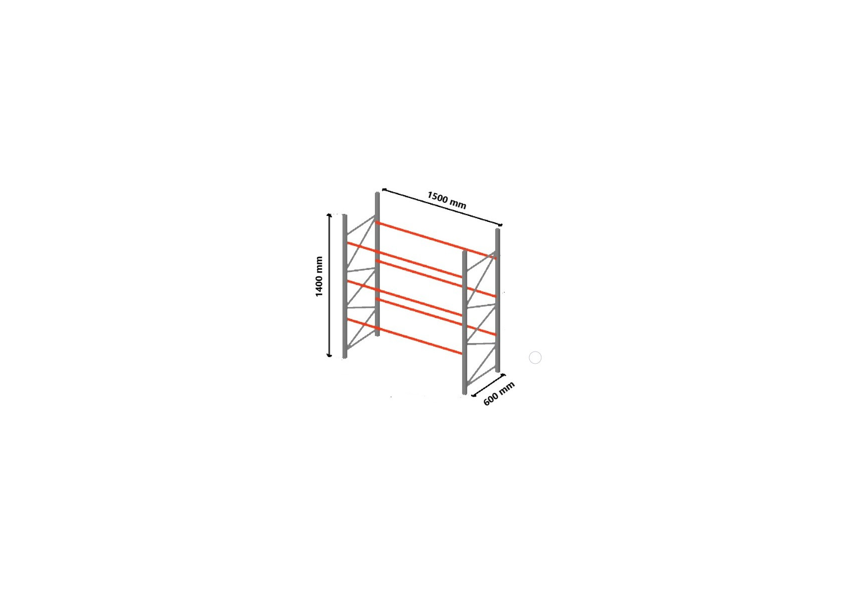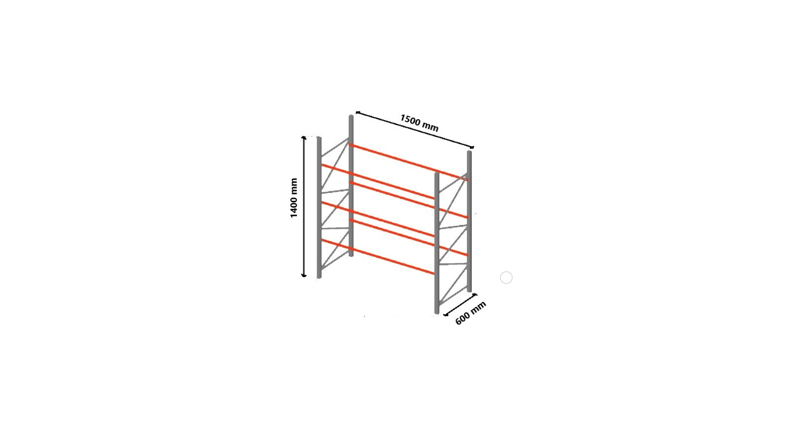 Idée de configuration : 1 module simple face de L. 1.5 ml x Prof. 0.6 m x H. 1.4 m - sol + 3 niveaux (tablettes métalliques).